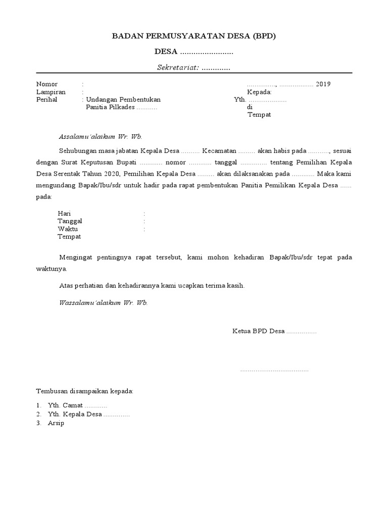 Untuk itu disini saya akan memberikan beberapa contoh surat undangan rapat yang biasa saya buat didalam lingkup warga rt dan rw. Silahkan anda download contoh surat keterangan tanah dari kepala desa dibagian bawah postingan ini. Surat undangan tersebut memang layaknya harus kita ketik dan print sebaik mungkin kemudian disebarkan untuk dapat diperhatiakan. Anggota bpd desa sukaluyu alamat. Panitia pemilihan kepala desa desa :