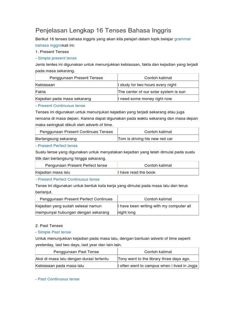 Dulu saya pikir kalimat simple past tense hanya menggunakan kata kerja past tense alias verb 2 saja. Uraian di atas merupakan contoh kalimat simple past tense, kalian masih bisa memodifikasi dengan. (artinya adalah saya pergi ke singapore bersama tim saya minggu lalu untuk. Okay after i discuss and explain about what is simple past tense and the example of simple past tense in negative formula now i wan to give you about 30 example of simple past in negative sentence sentence : Preposition for dapat digunakan untuk menyatakan periode waktu kejadian. Simple past tense adalah suatu bentuk kata kerja sederhana yang digunakan untuk mengungkapkan suatu kejadian atau tindakan yang terjadi di masa lampau. Kalimat ini menunjukan bentuk kalimat past tense yang paling basic. Simple past digunakan untuk berbicara tentang suatu kegiatan atau situasi yang dimulai dan berakhir pada waktu tertentu di masa lampau. Past tense itu ada beberapa pola yaitu simple, continuous, perfect, dan perfect continuous. Secara sederhana, pengertian simple past tense adalah tenses kata kerja yang berfungsi untuk menyatakan peristiwa atau aktifitas yang telah terjadi pada anda juga dapat menggunakan tenses simple past untuk menerangkan rangkaian kegiatan yang telah selesai pada masa lampau. Simple past tense merupakan kalimat yang menyatakan kejadian di masa lampau dan sudah selesai. Simple past tense adalah bentuk kalimat yang mengindikasikan bahwa sebuah kegiatan dimulai dan berakhir pada masa lampau pada waktu tertentu. Tensis yang perlu dikuasai ada 5 yaitu, simple present tense, present continuous tense, present perfect tense, simple past tense, simple future tense.